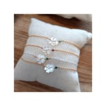La collection "Fleur des Iles" est composée d'un bracelet ou d'un collier ou encore d'une paire de créoles avec une fleur en nacre véritable (environ 1cm) et de pierres fines (2mm de diamètre).